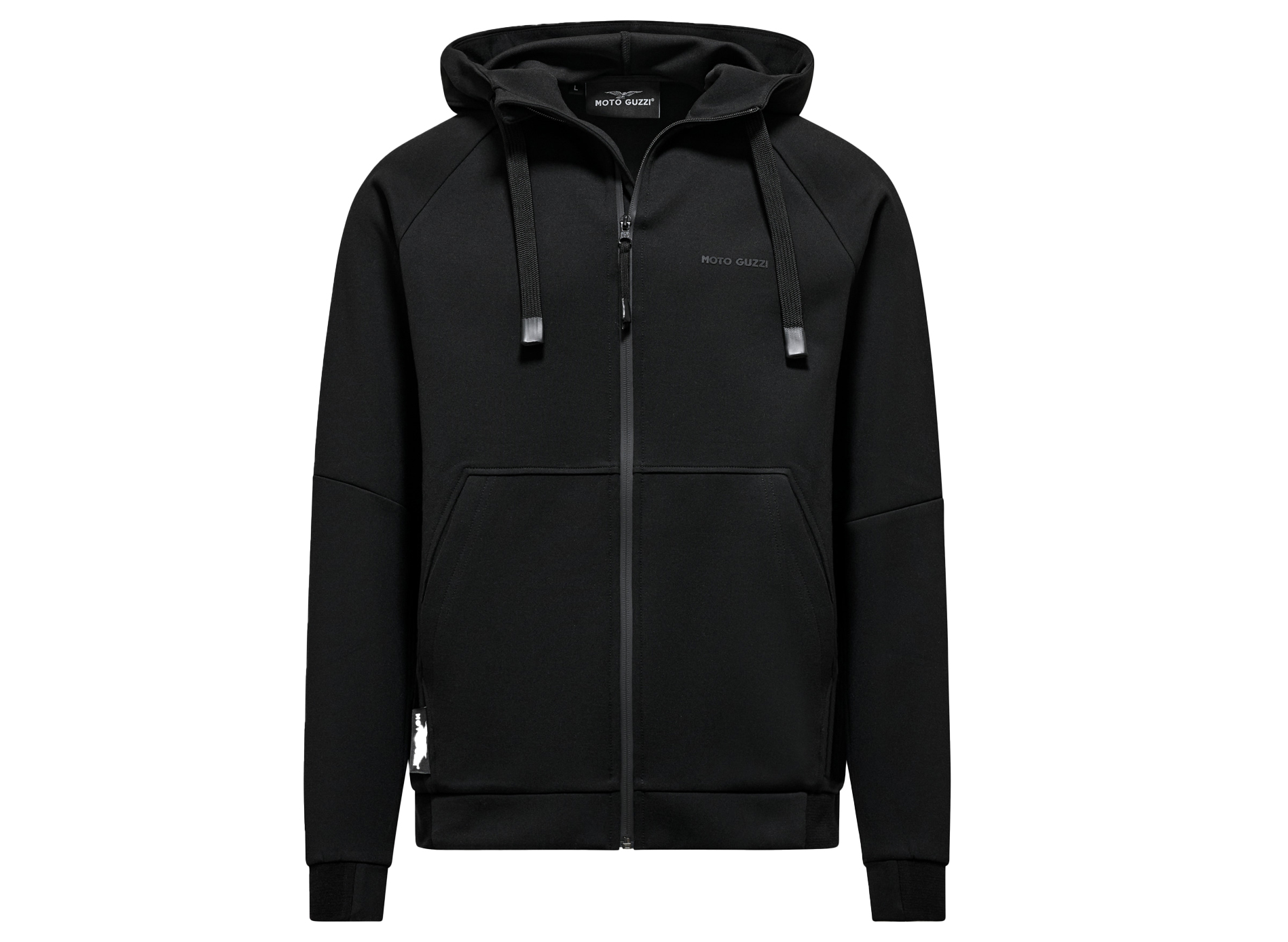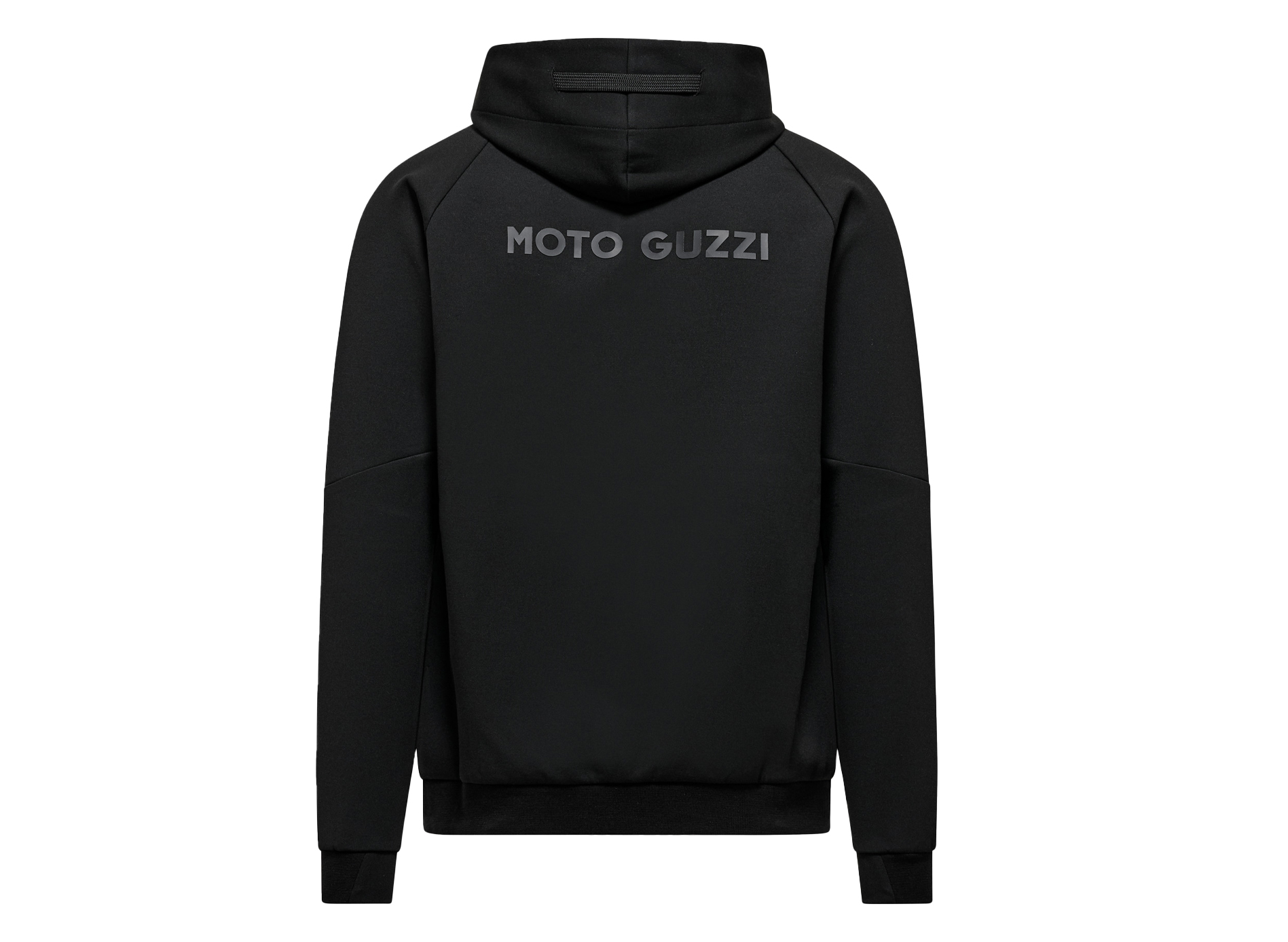 Sweatshirt aus Scuba-Stoff mit gummiertem MOTO GUZZI-Druck auf Brust und Rücken. Mit verstellbarer Kapuze, durchgehendem Reißverschluss und Kängurutaschen. Raglanärmel, eine sportliche Neuinterpretation eines Klassikers der Herrenbekleidung. Das seitlich aufgenähte MOTO GUZZI Logo sorgt für einen unverwechselbaren Touch, während die kontrastierenden doppelten Stoffbündchen an Ärmeln und Saum für Stil und Komfortsorgen.