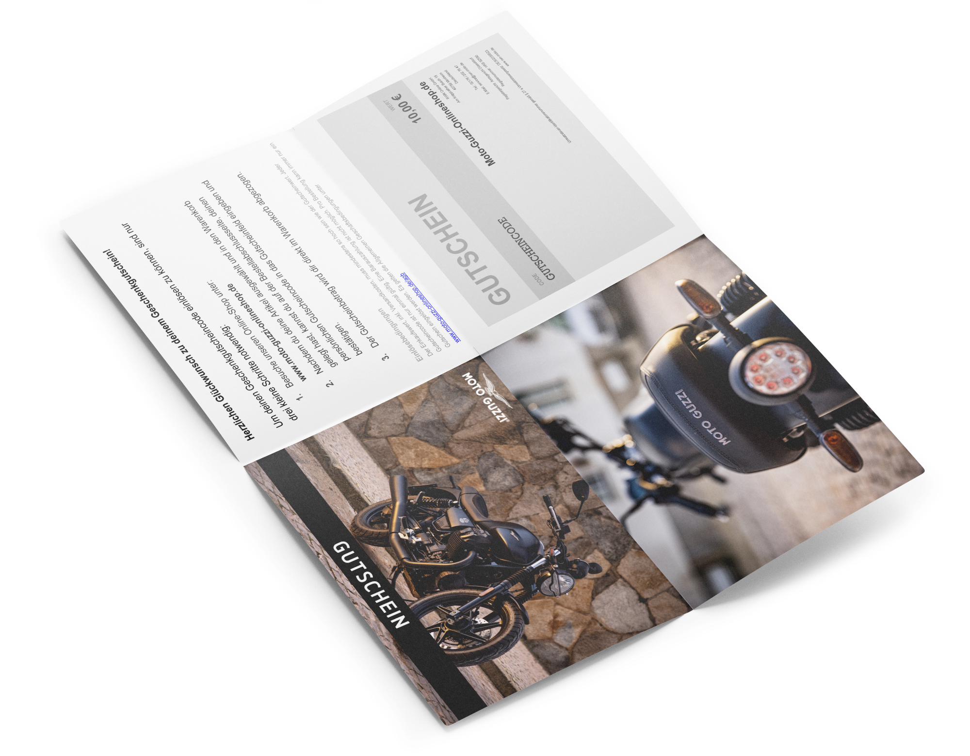Einlösebedingungen: Der Warenkorbwert, exkl. Versandkosten, muss mindestens so hoch sein wie der Gutscheinwert. Jeder Gutscheincode ist nur einmal gültig. Pro Bestellung kann immer nur ein Gutschein eingelöst werden. Eine Barauszahlung ist nicht möglich. Es gelten die Allgemeinen Geschäftsbedingungen unter www.moto-guzzi-onlineshop.de/agb
